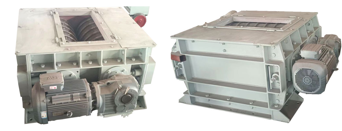 本機器之工作原理是使落入兩齒輥之間的物料,在二齒輥相對方向旋轉(zhuǎn)作用下,遭到擠壓來獲得要求粒度的物料。